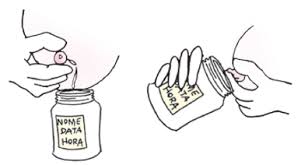 5. Na hora da coleta, identificar o frasco com seu nome, data e hora.